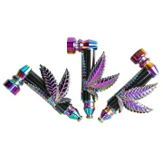 Set Pipe Ragga en Métal – Effet Arc-en-Ciel avec feuille de cannabis + grilles de rechange