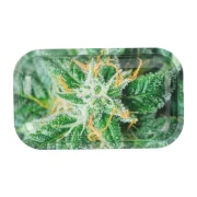 Ce plateau fumeur personnalisé au motif plante se nomme bien AK-47 ! Ne vous attendez pas à voir une arme imprimée sur le métal : il s’agit ici de la variété de plante CBD qui porte le même nom ! Très appréciée pour son effet relaxant tout en ayant un goût prononcé en bouche, la plante AK-47 est ici mise à l’honneur avec ce plateau métal de la marque V-Syndicate.