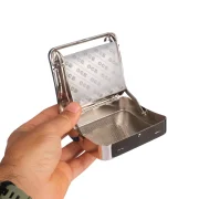 Blague à tabac en métal 2 en 1 avec rouleuse à cigarette intégrée.