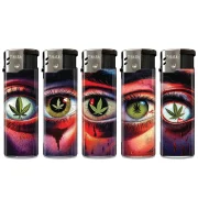Les 50 briquets de ce lot sont décorés de divers visuels originaux inspirés de l’univers de la weed. Ce display contient au total 5 modèles différents en 10 exemplaires. Chaque briquet dispose d’une sécurité enfant et sont tous conformes aux normes européennes.