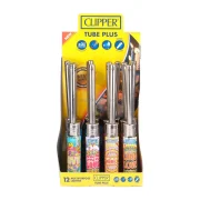 Display offrant un total de 12 briquets CLIPPER collection “Tube Plus” – Coloris variés.