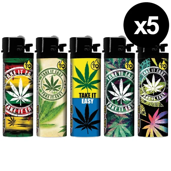 Ne payez plus cher pour un briquet qui a du style ! Ce lot de 5 briquets Take It Easy Leaf allie design original, fiabilité et petit prix. Parfaits pour votre usage quotidien ou pour partager avec vos proches, ils sont toujours prêts à l’emploi.