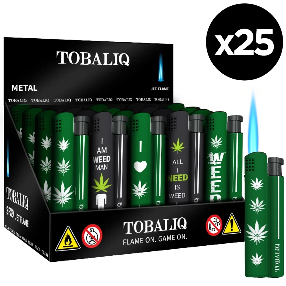 Chaque briquet est rechargeable au gaz butane, ce qui en fait une solution durable, économique et écoresponsable. Le display contient 25 briquets assortis, permettant à vos clients de choisir parmi plusieurs modèles “Weed” tous aussi attractifs les uns que les autres. Idéal pour dynamiser un comptoir, enrichir un rayon fumeur ou compléter une gamme d’accessoires tendance.