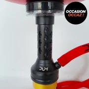 Vendue avec un foyer compatible système de chauffe type kaloud, un tuyau en silicone et un manche, la Dum Techno Smoke est une chicha en aluminium avec un vase en verre.