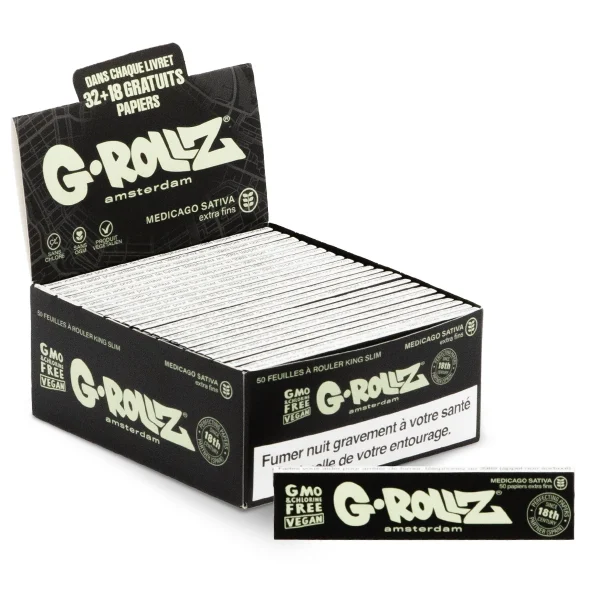Les feuilles à rouler G-Rollz Medicago Sativa sont conçues pour offrir une expérience naturelle, douce et premium. Fabriquées à partir de fibres végétales de luzerne (Medicago Sativa), ces feuilles à rouler non blanchies elles se distinguent par leur teinte verte naturelle, obtenue grâce au pigment de la plante, sans aucun colorant ni produit chimique.