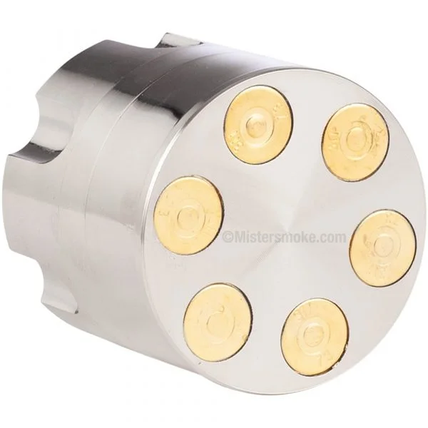 Faites forte impression avec le grinder barillet Hornet ! Ce grinder présente un design original, en forme de barillet de revolver. Chromé avec un moulage faisant office de vraie balles, il fera belle impression lorsque vous l’utiliserez pour vos préparations. Une véritable petite pièce de collection !