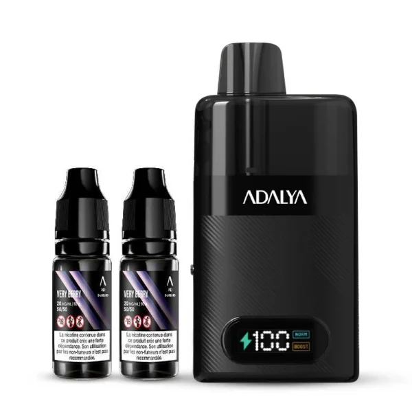 - 2 flacons de eliquide Adalya inclus assurant jusqu’à 30 000 bouffées