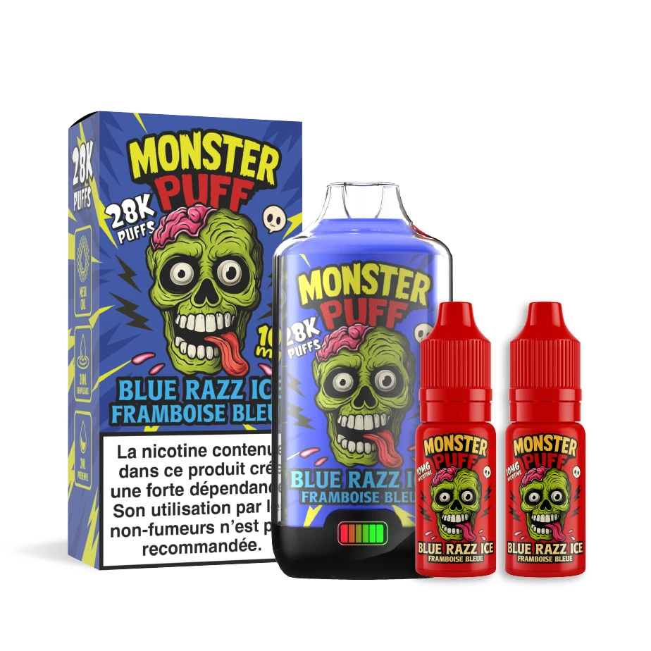 Monster Puff 28 000 bouffées – Goût Blue Razz Ice – 20 mg nicotine